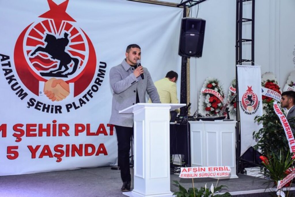 Atakum Şehir Platformu Kurucu Başkanı Erkut Erbil, yaptığı konuşmada platformun 5 yılda kat ettiği mesafeyi anlattı. Başkan Erbil, “Biz şehrimizin, ilçemizin tanıtımına, sosyal ve kültürel yaşantısına, istihdamına katkı sağlayacak projeler hayata geçirmek için kurulmuş bir yapıyız. Geride bıraktığımız 5 yılda, birbirinden önemli projelere imza attık. Sadece şehrimizin değil, ülkemizin dertleriyle dertlendik. Sinop ve Kastamonu’daki sel felaketinde, Manavgat merkezli yangın felaketinde, Kahramanmaraş merkezli olan ve 10 ilimizi etkileyen deprem felaketinde yardım tırlarımızla ve insan gücümüzle, hep biz vardık. Covid-19 virüsünün başladığı günden itibaren hayata geçirdiğimiz erzak kampanyalarımız ile her yıl 5 bin 555 aileye erzak ve bin 555 çocuğa bayramlık kıyafetlerini ulaştırıyoruz” dedi.