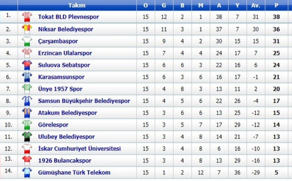 16.haftaya başlarken grupta ki puan durumu şu şekilde: