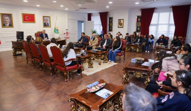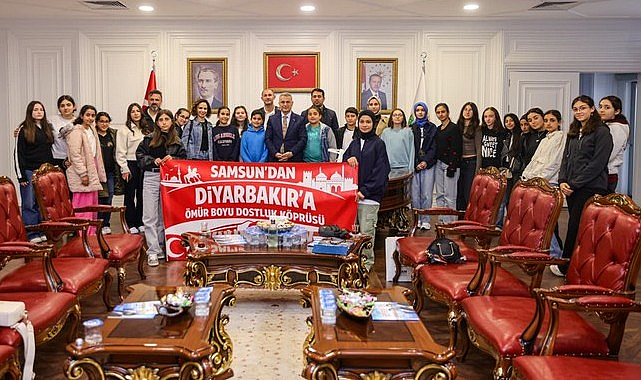 SAMSUN HABER - İlkadım Belediye Başkanı İhsan Kurnaz, 23 Nisan Ulusal Egemenlik ve Çocuk Bayramı dolayısıyla Samsun’a gelen Diyarbakırlı 26 öğrenciyi makamında ağırladı.