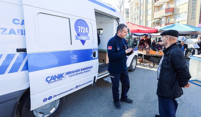Canik Belediyesi Mobil Zabıta Çözüm Merkezi’nin aralıksız bir şekilde hizmet vermeyi sürdürdüğünü aktaran Başkan İbrahim Sandıkçı, “Mobil zabıta çözüm merkezimizle hemşehrilerimizin taleplerini ve önerilerini yerinde dinlemeye devam ediyoruz. Çözüm merkezimizle ayrıca hemşehrilerimizin taleplerine yönelik dilekçelerini hızlı bir şekilde işleme alıyoruz. Taleplere yönelik çalışmaları ekiplerimizle birlikte süratle tamamlıyor ve sürece yönelik hemşehrilerimize bilgi veriyoruz. Canik’te yaşamı kolaylaştıran çalışmalarımızı sürdürüyor, hızlı ve etkin hizmet anlayışıyla yeni uygulamaları hayata geçirmeye devam ediyoruz” diye konuştu. Başkan İbrahim Sandıkçı ayrıca yapay zekâ destekli Canik Belediyesi Çözüm Merkezi üzerinden vatandaşların 7 gün 24 saat taleplerini ve önerilerini iletebildiğini de sözlerine ekledi.
