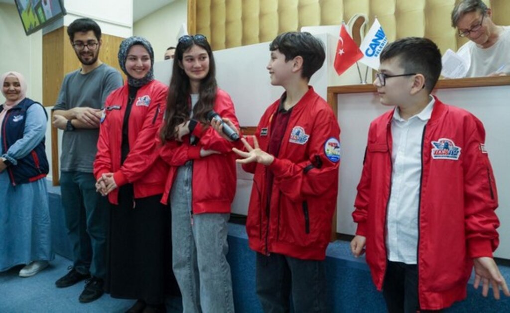 SAMSUN - Canik Belediye Başkanı İbrahim Sandıkçı, TEKNOFEST KKTC Sosyal İnovasyon Yarışması Ortaokul Kategorisi’nde En İyi Sunum Ödülü'nün sahibi olan Canik Özdemir Bayraktar Keşif Kampüsü öğrencileri Erva Dikbıyık, Akif Hamza Şentürk ve Yusuf Ali Semiz'i Canik Belediye Meclisi'nde ağırladı. Canik Belediye Meclisi Mayıs Ayı Kapanış Toplantısı'nın ardından öğrencilere hediye takdiminde bulunan Başkan İbrahim Sandıkçı, öğrencileri başarılarından dolayı tebrik etti. Canik Özdemir Bayraktar Keşif Kampüsü'nde bilim, teknoloji, yapay zekâ ve siber güvenlik alanlarında öğrencilerin yeteneklerini keşfettiği örnek bir eğitim sistemi uyguladıklarını ifade eden Başkan İbrahim Sandıkçı, "Canik'te Milli Teknoloji Hamlesi idealiyle geleceğe koşan nesilleri yetiştiriyoruz" dedi.