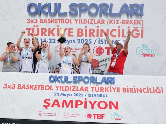 SAMSUN HABER - Canik Belediyespor Kulübü, 2025 Okul Sporları Türkiye Şampiyonları’na damga vurdu. Başarılarına yenilerini ekleyen Canik Belediyespor Kulübü, 2025 Okul Sporları Küçük Kızlar ve Yıldız Kızlar 3x3 Basketbol Türkiye Şampiyonları’nda şampiyonluk kupalarını müzesine götürdü. Canik’te spora ve sporcuya yönelik yeni projeleri hayata geçirmeye devam ettiklerini ifade eden Canik Belediye Başkanı İbrahim Sandıkçı, çifte şampiyonluk yaşayan Canikli sporcuları tebrik etti.