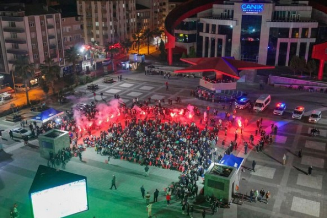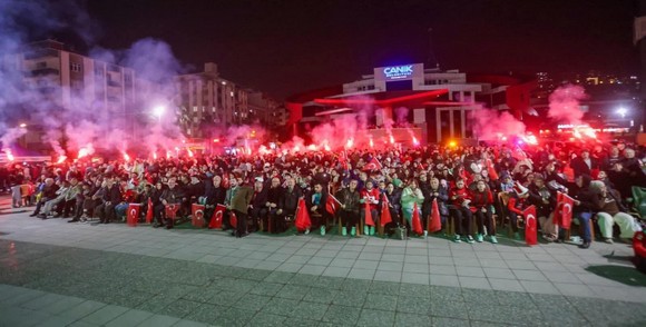 Canik Belediyesi'nin ilçede gerçekleştirdiği Türkiye-Kosova milli maç etkinliği 7'den 70'e her yaştan vatandaşın durak noktası oldu. 2026 FIFA Dünya Kupası Avrupa Elemeleri play off finalinde Kosova’yı 1-0 mağlup ederek 24 yıl sonra dünya kupasına katılma hakkı kazanan ay yıldızlı ekibin karşılaşmasını dev ekranla vatandaşlarla buluşturan Canik Belediyesi, adeta tribün ruhunu meydana taşıdı. Milli maç coşkusunun paylaşıldığı etkinliğe ilgiyle katılan vatandaşlar, milli maç heyecanına ortak olmaktan dolayı duyduğu memnuniyeti dile getirerek Canik Belediye Başkanı İbrahim Sandıkçı'ya teşekkür etti.