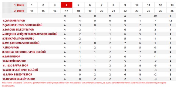 BAL 4. HAFTADA ALINAN SONUÇLAR VE PUAN DURUMU ŞU ŞEKİLDE: