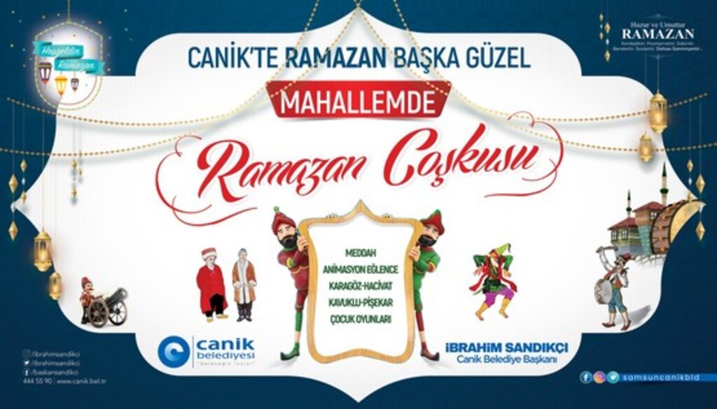 Samsun Haberleri - Canik Belediyesi, ‘Mahallemde Ramazan Etkinlikleri’ adıyla düzenlenecek etkinliklerle ilçedeki çocuklara farklı bir Ramazan Coşkusu yaşatmaya hazırlanıyor. Çocuk oyunları, animasyon gösterileri ve eğlencelerin yanı sıra Karagöz-Hacivat, Meddah, Kavuklu ile Pişekar gibi geleneksel Türk tiyatrosu örneklerinin yer alacağı etkinlik programı Ramazan ayı boyunca her hafta sonu ayrı bir mahallede devam edecek.