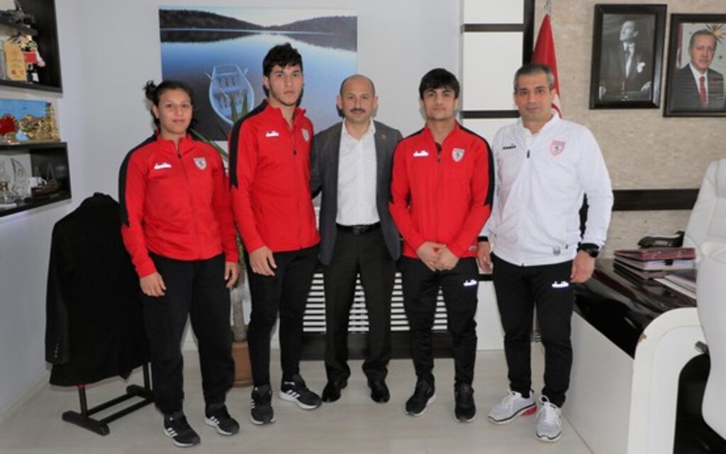 Samsun Spor Haber - Samsun Gençlik ve Spor İl Müdürü Feyzullah Dereci, Samsunspor’un başarılı judocularını konuk etti. 15-16 Mart 2023 tarihleri arasında Kocaeli’nde düzenlenen Gençler Türkiye Judo Şampiyonasında 70 Kg’da Gençler Türkiye şampiyonu ve Avrupa ikincisi Ecem Baysu, 66 Kg’da gençler Türkiye ikincisi Davut Toktay, Türkiye üçüncüsü ve Avrupa yedincisi olan Mertcan Kömpe, Antrenör Barış Özen’le birlikte İl Müdürümüz Feyzullah Dereci’yi makamında ziyaret etti. Antrenör Barış Özen, “Avrupa Şampiyonası’na katılabilmek için sporcularımız iyi hazırlandı. Polonya’da madalya maçı yapıp milli takımdaki yerlerini perçinlemek istiyorlar. Allah’ın izniyle Samsun’un gururu olmaya devam edecekler” diye konuştu.
