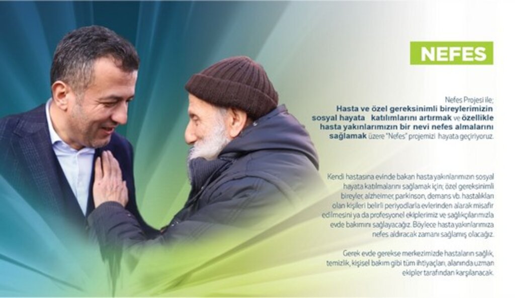 Nefes projesini anlatan Cumhur İttifakı AK Parti Samsun Büyükşehir Belediye Başkan Adayı Halit Doğan, “Her şey bazen dört dörtlük olmuyor. İnsanların bakmakla yükümlü olduğu anne babaları olabiliyor, evlatları olabiliyor. Hastaları oluyor. Hepimiz bunun zorlu bir süreç olduğunu biliyoruz. Hem hastalarımıza yardımcı olalım hem de hasta yakınlarımıza bir nefeslik yardımımız dokunsun diyerek bir proje geliştirdik. Adına da “Nefes” dedik. Hasta ve özel gereksinimli bireylerimizin sosyal hayata katılımlarını artırmak ve özellikle hasta yakınlarımızın bir nevi nefes almalarını sağlamak üzere “Nefes” projemizi hayata geçiriyoruz. Kendi hastasına evinde bakan hasta yakınlarımızın sosyal hayata katılmalarını sağlamak için; özel gereksinimli bireyler, alzheimer, parkinson, demans ve benzeri hastalıkları olan kişileri belirli periyodlarla evlerinden alarak misafir edilmesini ya da profesyonel ekiplerimiz ve sağlıkçılarımızla evde bakımını sağlayacağız. Böylece hasta yakınlarımıza nefes aldıracak zamanı sağlamış olacağız. Gerek evde gerekse merkezimizde hastalarımızın sağlık, temizlik, kişisel bakım gibi tüm ihtiyaçları, alanında uzman ekipler tarafından karşılanacak.Bu projeyi hayata geçirirken insanlara nasıl nefes aldırabiliriz diye düşündük. Haftada iki gün, iki saat anne babaya veya hasta bakan her kimse; ona kendine zaman ayırabileceği bir alan oluşturalım istedik. İsteyen çarşı pazarını görsün isteyen dinlensin, isteyen dışarı çıkıp arkadaşlarıyla hastasını düşünmeden, gözü arkada kalmadan sohbet edebilsin” ifadelerini kullandı.