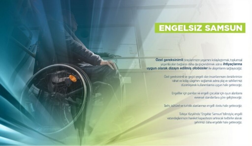 SBB Başkan Adayı Halit Doğan, “Şehrin, sosyal, ekonomik, kültürel ve teknolojik gelişmelerinden herkesin eşit faydalanabildiği bir Samsun sözü veriyoruz! Tüm vatandaşlarımızın her anında hep yanında olmayı ilke edinerek insan öncelikli, hizmet odaklı anlayışımızla hareket edeceğiz. Samsun’u her kesimden daha mutlu ve huzurlu insanların yaşadığı bir kent haline getirmek için, sosyal dayanışmanın da en güçlü örneğini sergileyeceğiz. İnsanlarımız güçlü olacak ki, Samsun güçlü olsun. Pek çok insanımızın hayatını kolaylaştıracak, ihtiyaç duyabilecekleri alanlarda onlara destek sağlayacağız. Samsun’da insanımızın yaşam konforunu etkileyen tüm engelleri kaldırmak ve hayatı herkes için kolaylaştırmak temel hedefimiz. Türkiye Yüzyılı’nda “Engelsiz Samsun” bilinciyle, özel gereksinimli vatandaşlarımızın hareket kapasitesini artıracak uygulamalarla şehrimizi daha erişebilir hale getireceğiz. Engellilerimizin ulaşımlarını, ihtiyaçlarına uygun olarak dizayn edilmiş otobüsler ile sağlayacağız. Plaj ve sahillerimizi onların kullanımına uygun hale getireceğiz, ulaşımlarını kolaylaştıracağız. Engelliler için parklarımızı ve engelli çocuklar için oyun alanlarımızı evrensel standartlara göre geliştireceğiz. Tarihi, kültürel ve turistik alanlarımızı engelli dostu hale getireceğiz” diye konuştu.