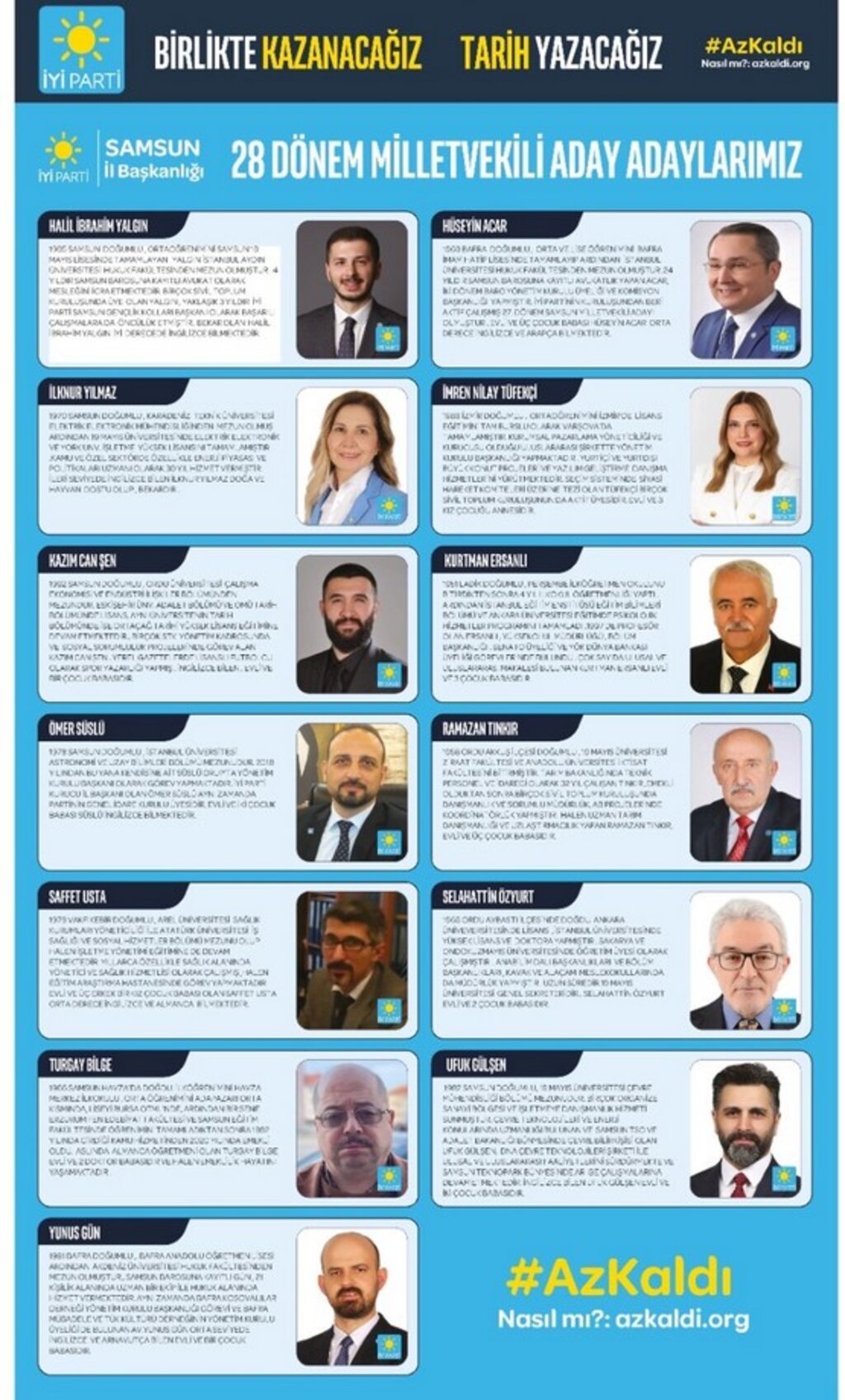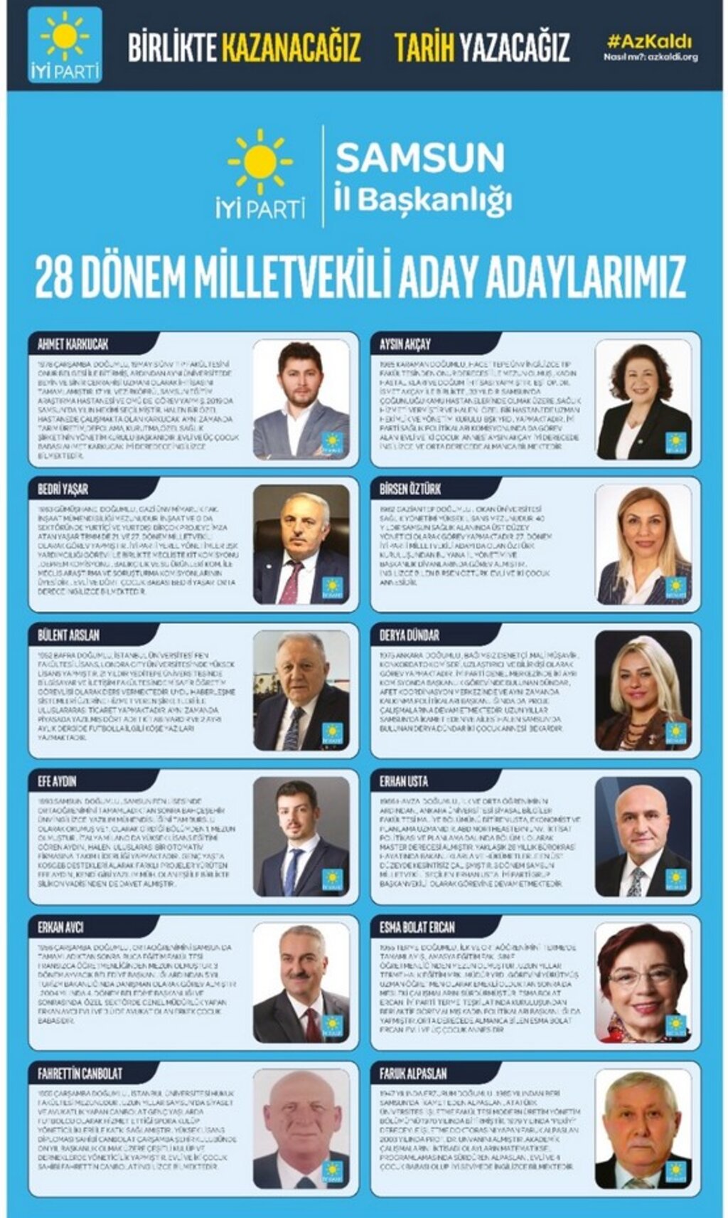 İŞTE İYİ PARTİ SAMSUN 28 DÖNEM MİLLETVEKİLLİĞİ SEÇİMİ ADAY ADAYLARI: