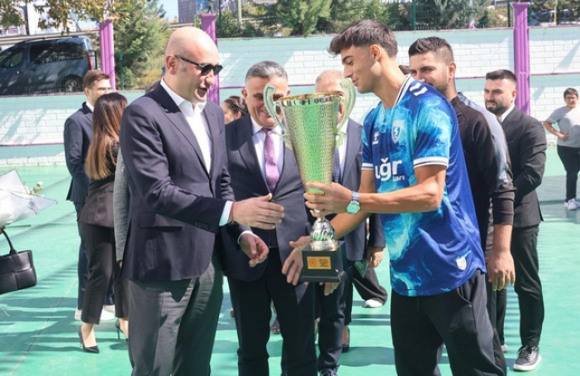 Hüseyin Yücel’e, Okul Sporları Futbol Gençler Türkiye Birincisi olan Canik Kampüsü öğrencileri şampiyonluk kupasını teslim etti. Sayın Yücel, şampiyon takımı kutlarken, bu sene de şampiyonluk ve Dünya Şampiyonası’na katılma sözü aldı.