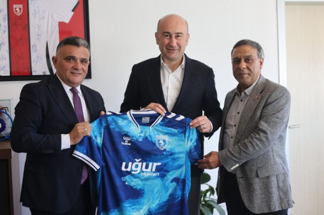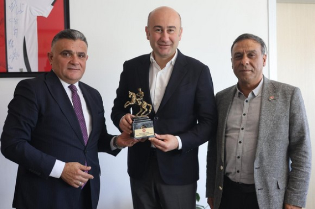 Ziyaretin sonunda Samsun Uğur Okulları Kurucusu Ender Gür ve Uğur Kurs Kurucusu Saadettin Turgut, Hüseyin Yücel’e Onur Anıtı maketi ve Samsunspor’un Atatürk temalı mavi formasını hediye etti.