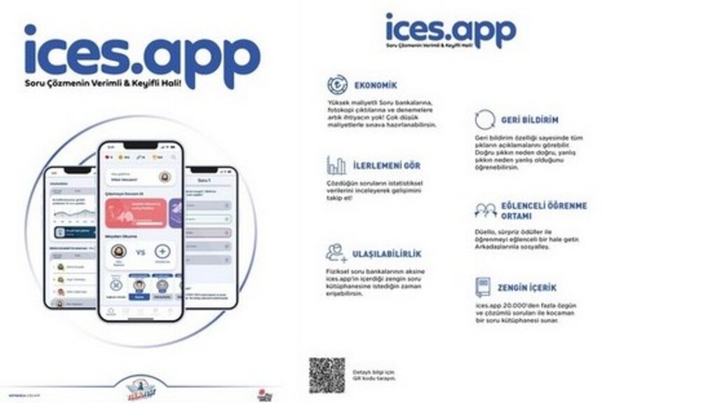 20.000’den fazla özgün ve çözümlü soruları ile büyük bir soru kütüphanesine sahip olan ices.app uygulaması, yüksek maliyetli soru bankaları ve fotokopi çıktılarına ihtiyaç duymadan çok küçük maliyetlerle sınavlara hazırlanma olanağını öğrencilere sunuyor.