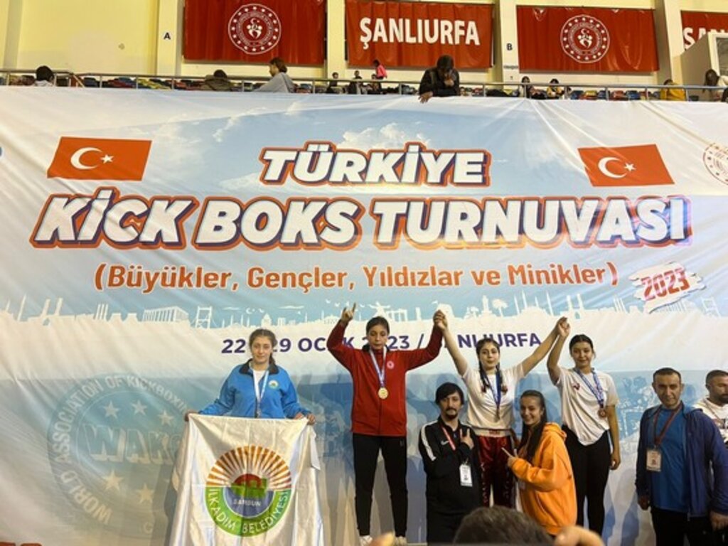 Samsun Spor Haber - Şanlıurfa'da düzenlenen 8 bin sporcunun katılım sağladığı Türkiye Kick Boks Turnuvası’nda İlkadım’lı Kick Bokscular kursiye 3 Altın, 6 Gümüş, 4 Bronz madalya ile çıktı. Genç Bayan Full Contact 48 KG Zeynep Gülcan Tuğrul, Yıldız Erkek Kick Light 42 KG Muhammet Arlı, Yıldız Erkek Point Fighting 63 KG Hüseyin Emre Yıldırım Türkiye Birincisi oldu.