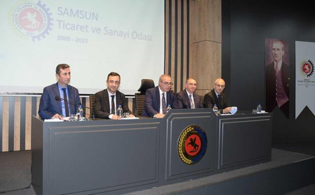 Samsun Haberleri - Samsun TSO’nun 2018-2022 döneminin son Meclis Toplantısı’nda konuşan Yönetim Kurulu Başkanı Salih Zeki Murzioğlu, ‘Güçlü Samsun, Güçlü Türkiye’ vurgusu yaparak, “Ortak payda Samsun etrafında, belirlediğimiz hedeflere ulaşmak için paydaşlarımızla güçlü bir iletişim ve diyalog içinde çalışmaya devam edeceğiz” dedi. Murzioğlu ayrıca, yürütülen çalışmalara katkılarından dolayı meclis üyelerine de teşekkür etti.