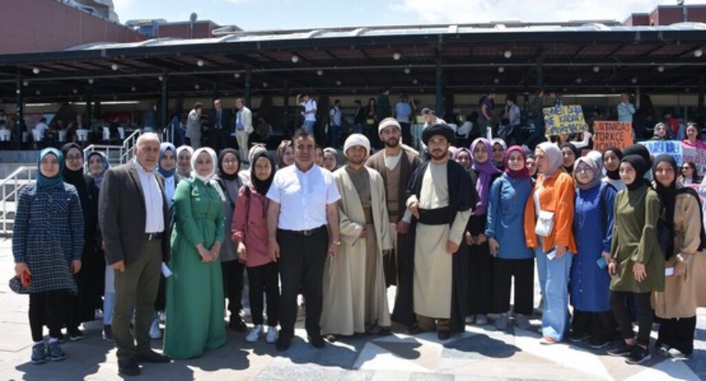 Kurupelit Yerleşkesi’ndeki Yaşam Merkezi’nde buluşan topluluk üyeleri, “Vatandaş Türkçe Konuş”, “Ses Bayrağımız Türkçe”, “Pardon Yerine Affedersiniz”, “Kampüs Yerine Yerleşke” yazılı pankartlar taşırken derviş kıyafeti giyen 3 öğrenci ise öğrencilerin arasında dolaşarak şiirler okudu.