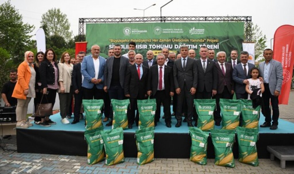 “Büyükşehir Belediyesi Her Zaman Üreticinin Yanında” projesi kapsamında 2023 yılında 1.200 paket olan silajlık mısır desteği bu yıl 2 kat artırılarak yaklaşık 2 bin 40 pakete çıkarıldı. 13 ilçede (Alaçam, Atakum, Asarcık, Bafra, Çarşamba, Havza, Kavak, Lâdik, Ondokuzmayıs, Salıpazarı, Tekkeköy, Terme, Vezirköprü ve Yakakent) silajlık tohum desteği sağlanacak. Bu sayede 12.000 dekar alanda ekimi gerçekleştirilecek silajlık mısırda üretim hedefi ise 72 bin ton olarak belirlendi. Proje kapsamında Çarşamba İlçe Tarım ve Orman Müdürlüğü bahçesinde tören düzenlendi. Törene Çarşamba Kaymakamı Şükrü Yıldırım, İlçe Jandarma Komutanı Binbaşı Mustafa Kemal Çelik, İlçe Emniyet Müdürü Barik Çiçek, Samsun Büyükşehir Belediyesi Tarımsal Hizmetler Dairesi Başkanı Ali Korkmaz, İl Tarım ve Ormancılık Müdür Vekili Nail Kırmacı, Çarşamba İlçe Tarım ve Ormancılık Müdürü İrfan Öztürk, görevliler, muhtarlar ve üreticiler katıldı.