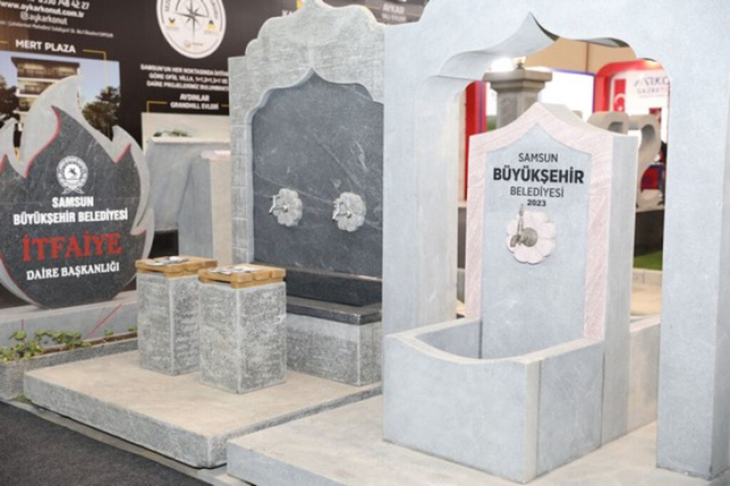 Fuarda yer alan ürünlerle ilgili bilgi veren Samsun Büyükşehir Belediyesi Doğal Taş Elemanları Üretim Tesisi Şube Müdürü Emre Şirin, “TÜYAP’ ta standımızda granitten ürettiğimiz kent mobilyaları, yer döşemeleri, hayrat çeşmeleri, peyzaj ürünleri şeklindeki ürünlerimiz ile yer aldık. Büyükşehir Belediyesi olarak kendi maden sahamızda kendi işçilerimiz ile Doğaltaş Elemanları Üretim Tesisimizde 2 boyutlu olarak ürettiğimiz ürünleri burada sergiledik. Çok geniş bir ürün gamımız var. Yaklaşık 40 çeşit ürün üretiyoruz. Fuarı ziyaret eden vatandaşlarımızın standımıza çok güzel bir ilgisi oldu” diye konuştu.