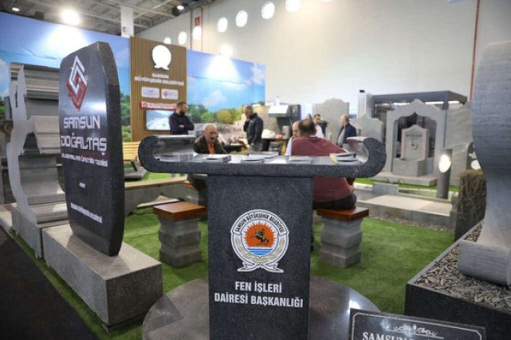SAMSUN HABER - 2 - 5 Mayıs 2024 tarihleri arasında TÜYAP Samsun Fuar ve Kongre Merkezi'nde 8. kez düzenlenen Yapı, İnşaat Malzemeleri, Asansör, Tesisat, Isıtma, Soğutma, Havalandırma, Doğalgaz ve Teknolojileri Fuarı’nda Samsun Büyükşehir Belediyesi de kurduğu stantla yer aldı. Gürcistan, Azerbaycan, Rusya, Ukrayna, Ortadoğu ve Türki Cumhuriyetler başta olmak üzere birçok ülkeden ziyaretçinin de ağırlandığı fuarda Büyükşehir Belediyesi’nin standı ilgi gördü. Büyükşehir Belediyesi’nin Doğaltaş Elemanları Üretim Fabrikası’nda üretilen ürünleri oldukça dikkat çekti.