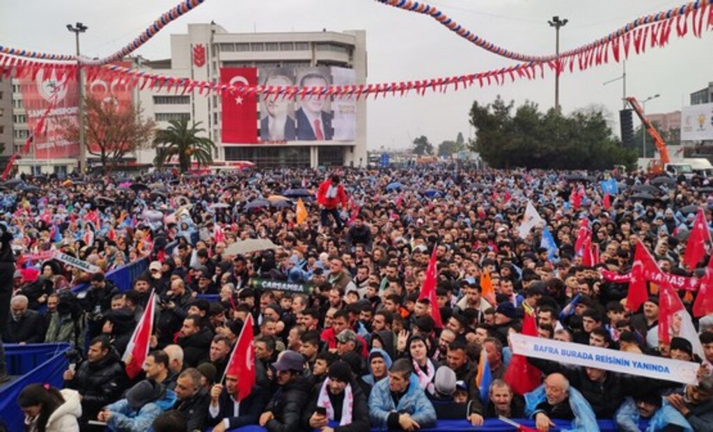 Cumhurbaşkanı Erdoğan, “31 Mart'ta da şehirlerimizden müjde alacağımıza inanıyorum. Her zaman Samsun yol açıcı, istikamet gösterici vasfıyla öne çıkmış bir şehirdir. Bu seçimde de sizden aynı liderliği bekliyoruz. Sizlerden bir kez daha destek istiyoruz. Sandık başında vuracağınız mühürle sadece kendinizin değil, çocuklarınızın nasıl bir şehirde yaşayacağının kararını da vereceksiniz. Şehirlerimizi alt ve üstyapısıyla geliştirerek evlatlarımıza daha güçlü bir vatan bırakmakla mükellefiz. Bu ülkenin her karış toprağını eserlerimizle donatmak boynumuzun borcudur. Seçime kadar hep beraber çok çalışmalıyız. Kapı kapı dolaşacağız. AK Parti'nin alametifarikası nedir diye sorarsanız, eser ve hizmettir. Bu hakikati herkes de kabul eder. Gerçekleştirdiğimiz demokrasi ve kalkınma adımlarıyla Cumhuriyetimize destek olan bir partidir. Eser ve hizmet konusunda bizimle yarışacak kimse tanımıyoruz. Vizyon, proje ve yatırım konusunda da bizimle yarışacak kimse çıkmadı” dedi.