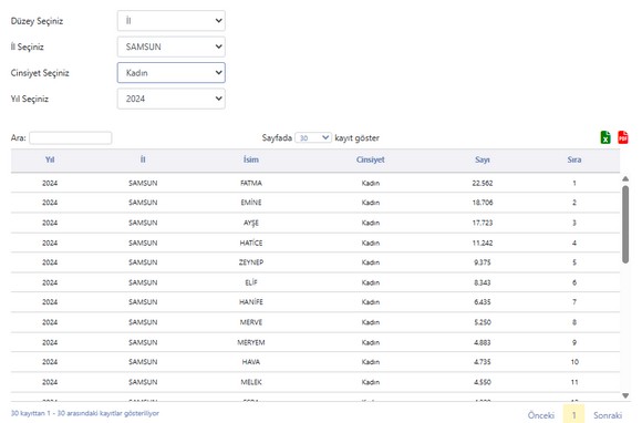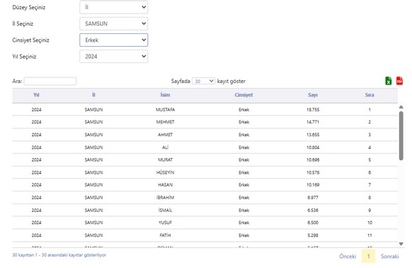SAMSUN HABER - Türkiye İstatistik Kurumunun Adrese Dayalı Nüfus Kayıt Sisteminden aldığı verilere göre, geçen yıl (2024) içinde Samsun’da dünyaya gelen çocuklara verilen isimler açıklandı.