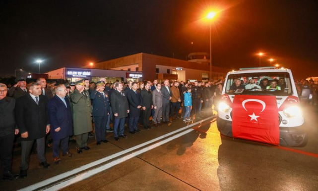 Aziz şehidimizin naaşı bu akşam (8 Aralık Pazartesi Çarşamba Havalimanı'nda karşılandı.
