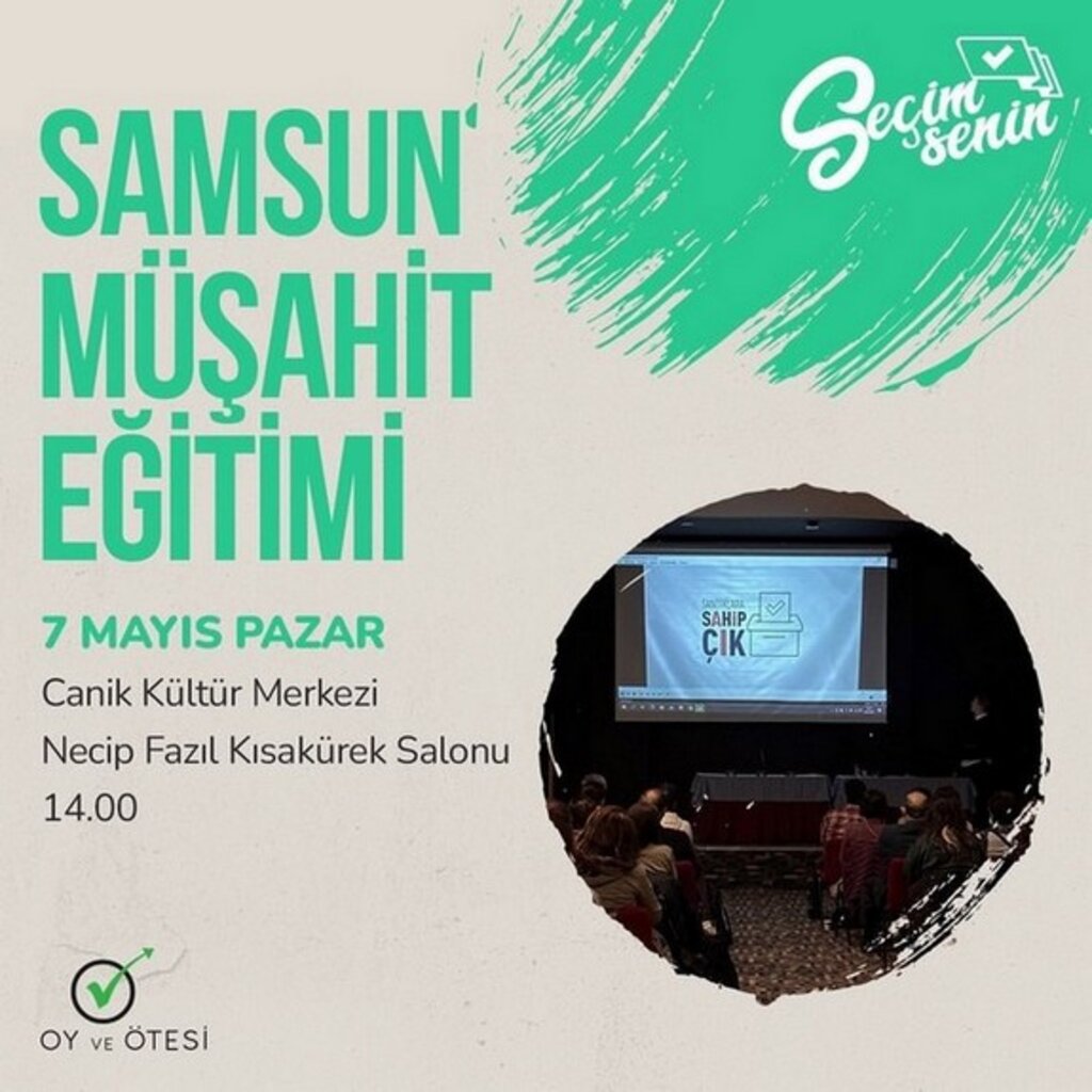 Samsun Haber – Tüm yurt genelinde en az 100 bin gönüllüye ulaşmayı hedefleyen Oy ve Ötesi Derneği tarafından düzenlenecek 50 büyük eğitimin bir tanesi de 7 Mayıs tarihinde Samsun’da yapılacak.