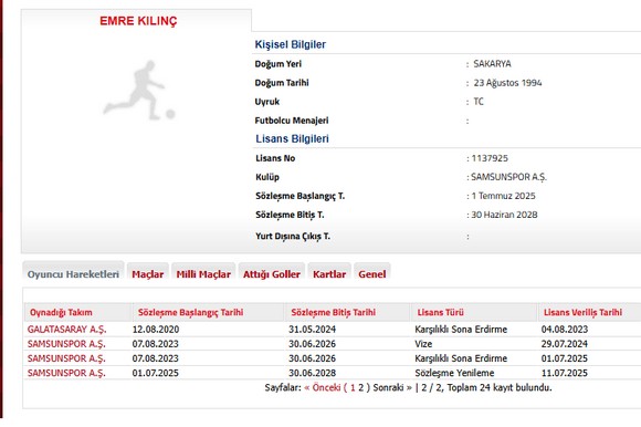 2 sezon önce Samsunspor'a gelen ve oynadığı futbol ile takıma büyük katkı sağlayan kanat oyuncusu Emre Kılınç ile yapılan görüşmeler sonucu 30 Haziran 2026'da bitecek olan sözleşmesi 2 yıl daha uzatılarak 30 Haziran 2028 olarak imzalandı.