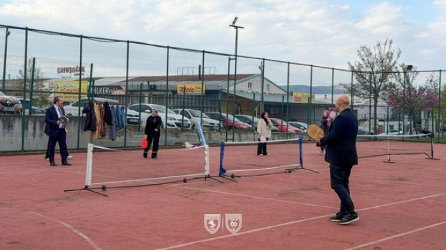 SAMSUNSPOR HABER - Samsunspor Kulübünün Vezirköprü ziyareti kapsamında, sporun birleştirici gücünü yansıtan anlamlı etkinlikler gerçekleştirildi. Program dahilinde Vezirköprü İlçe Kaymakamı Sayın Özgür Kaya ve Kulüp Başkan Yardımcımız Fazlıhan Carus, son dönemin popüler branşlarından olan Pickleball oynayarak keyifli anlar yaşadılar.