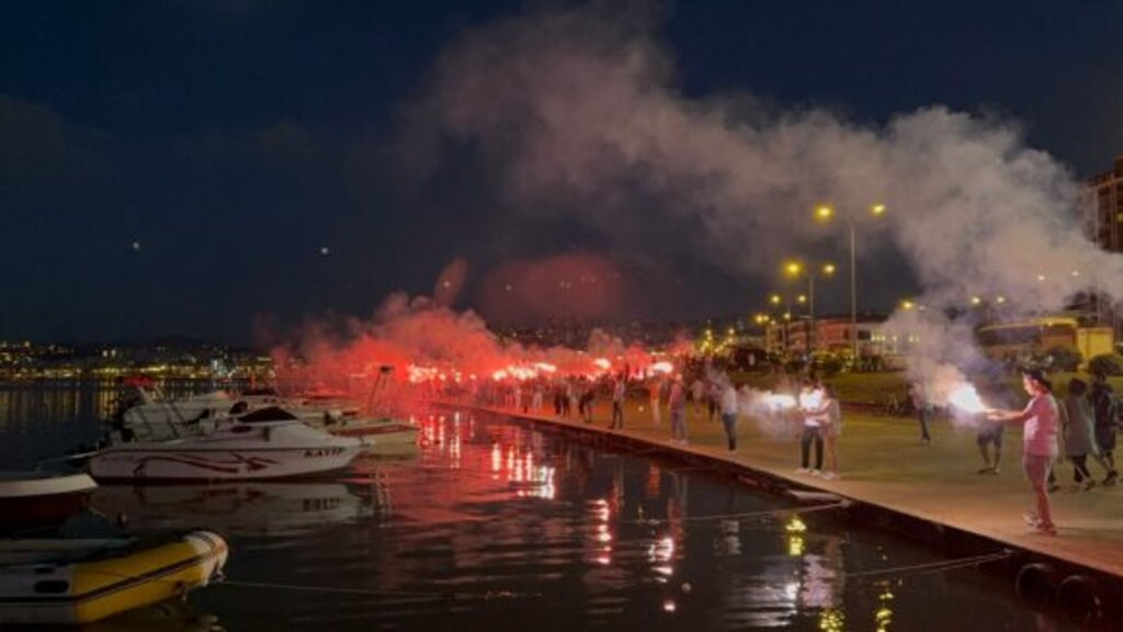 Atakum ilçesinde toplanan Kırmızı-Beyazlı taraftarlar, tezahüratlarla Adnan Menderes Bulvarı üzerindeki Kurupelit Yat Limanı’na geldi. Sahil boyunca yan yana dizilen taraftarlar, binlerce meşale yaktı. Saat 20.55’te havai fişeği ile başlayan meşale şov renkli görüntülere sahne oldu.