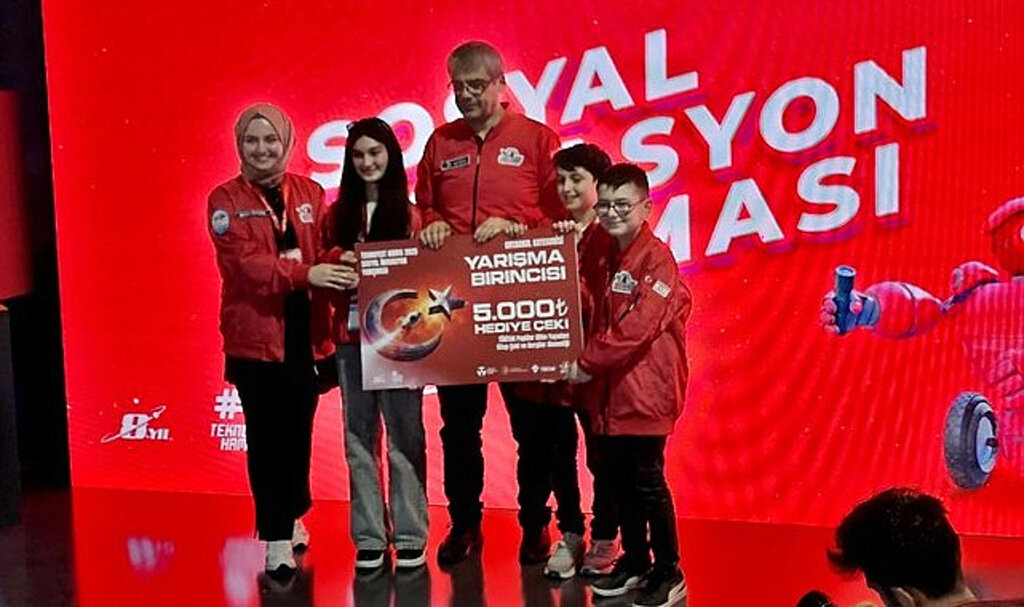 SAMSUN HABER - Canik Özdemir Bayraktar Keşif Kampüsü öğrencileri, geri dönüşüm sürecinin etkin ve verimli bir şekilde gerçekleştirilebilmesi adına hazırladıkları 'EcoBin' projesiyle TEKNOFEST KKTC'de ‘En İyi Sunum’ ödülün sahibi oldu. TEKNOFEST KKTC Sosyal İnovasyon Yarışması Ortaokul Kategorisi’nde kazandığı ‘En İyi Sunum’ ödülüyle başarılarına bir yenisini daha ekleyen Canik Özdemir Bayraktar Keşif Kampüsü öğrencileri, tasarımı ve üretimi kendilerine ait olan projeyle jüri üyeleri ve ziyaretçiler tarafından takdirleri topladı. Sürdürülebilir çevre anlayışla hazırladıkları projeyle TEKNOFEST KKTC'de ‘En İyi Sunum’ ödülünün sahibi olan Canikli öğrencileri tebrik eden Canik Belediye Başkanı İbrahim Sandıkçı, "Canik'imizde özgün fikirleri ve eserleriyle geleceğe yön veren nesilleri yetiştirmeye devam ediyoruz" dedi.