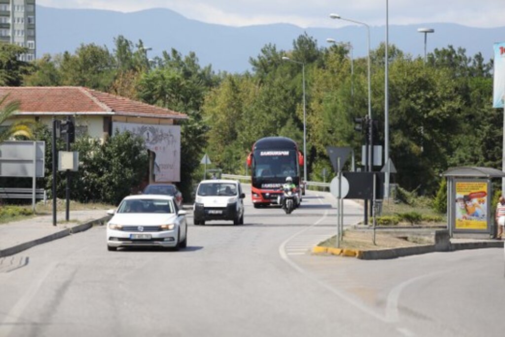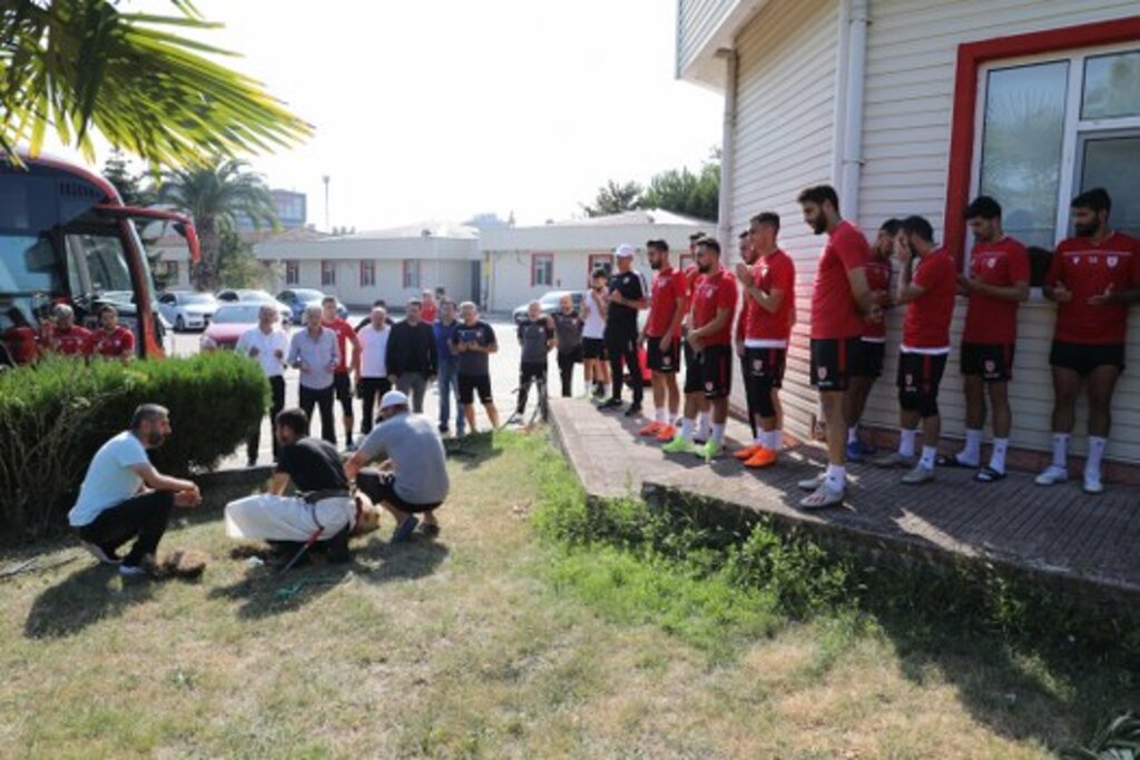 Nuri Asan Tesisleri’ne gelmeden önce polis eskortu eşliğinde şehir turu yapan Yılport Samsunspor’un yeni otobüsü için kurban kesildi.