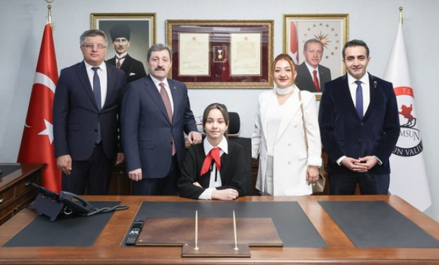 İlkadım Atatürk Ortaokulu 7. sınıf öğrencisi Diclenur Karahisar, 23Nisan Ulusal Egemenlik ve Çocuk Bayramı münasebetiyle İl Milli Eğitim Müdürü Dr. Murat Ağar, Okul Müdürü Gökhan Ömür Özsoy ve öğretmeni Nevin Fener ile birlikte Samsun Valisi Orhan Tavlı’yı ziyaret etti.